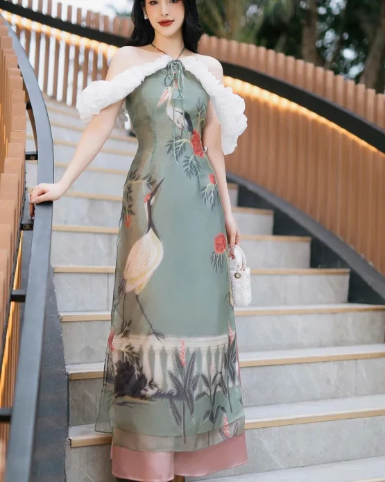 Chiếc áo dài cách tân Ding_Dang là lựa chọn hoàn hảo để bạn tỏa sáng trong các dịp lễ Tết, chụp ảnh kỷ niệm hay dự sự kiện văn hóa. Thiết kế độc đáo với tông màu hồng chủ đạo cùng họa tiết hoa văn truyền thống sắc nét, pha chút xanh và đỏ tươi tắn, mang đến vẻ ngoài vừa cổ điển vừa hiện đại. Áo có kiểu dáng phom rộng thoải mái cùng tay phồng nhẹ nhàng, thanh lịch, giúp che khuyết điểm hiệu quả và phù hợp với nhiều dáng người nhờ size Freesize. Cổ áo trụ đứng đặc trưng của áo dài truyền thống được điểm xuyết viền xanh nổi bật, tạo điểm nhấn tinh tế. Thuê ngay để tự tin khoe sắc với Ding_Dang chỉ 220.000 VNĐ/ngày!