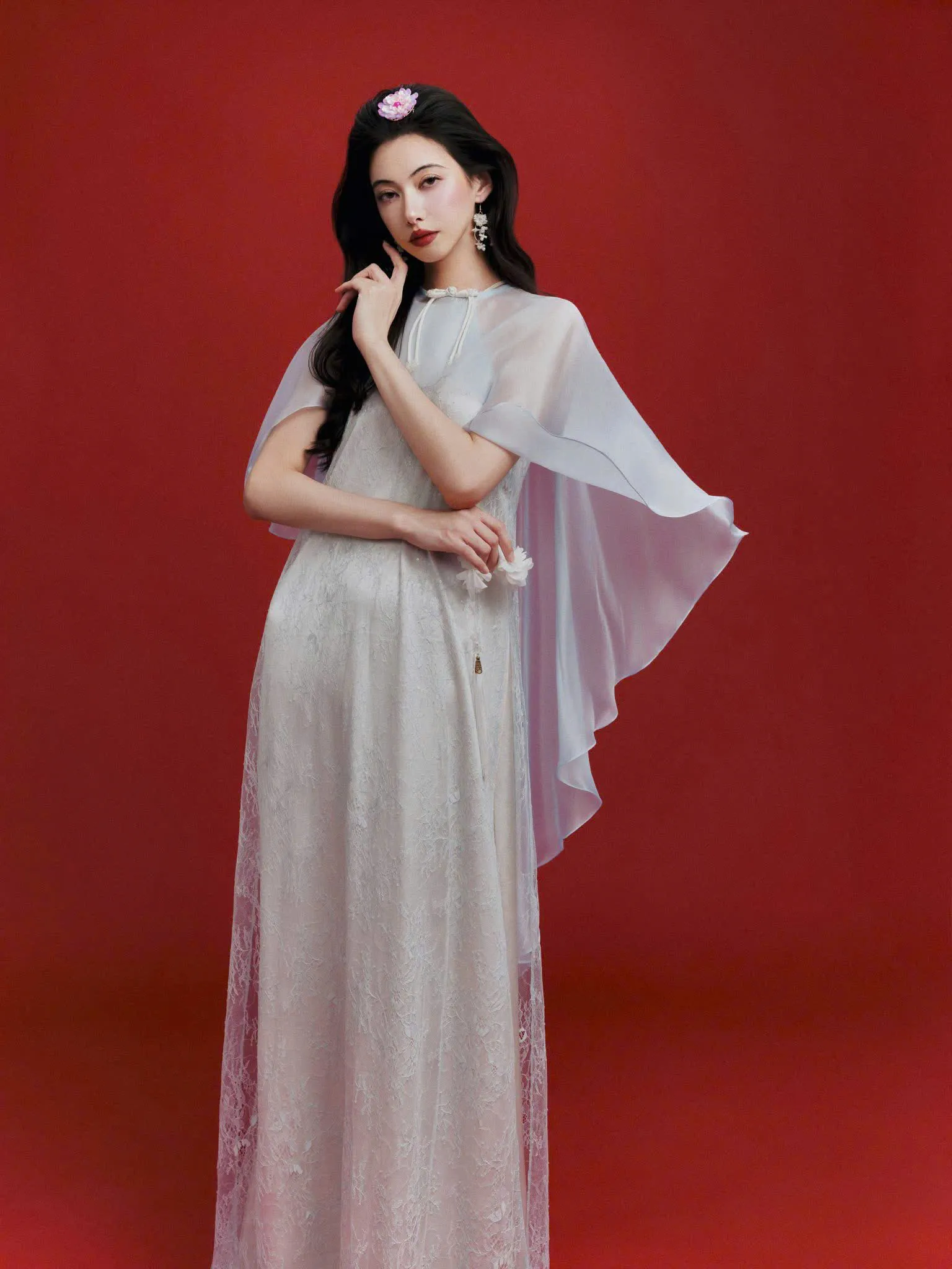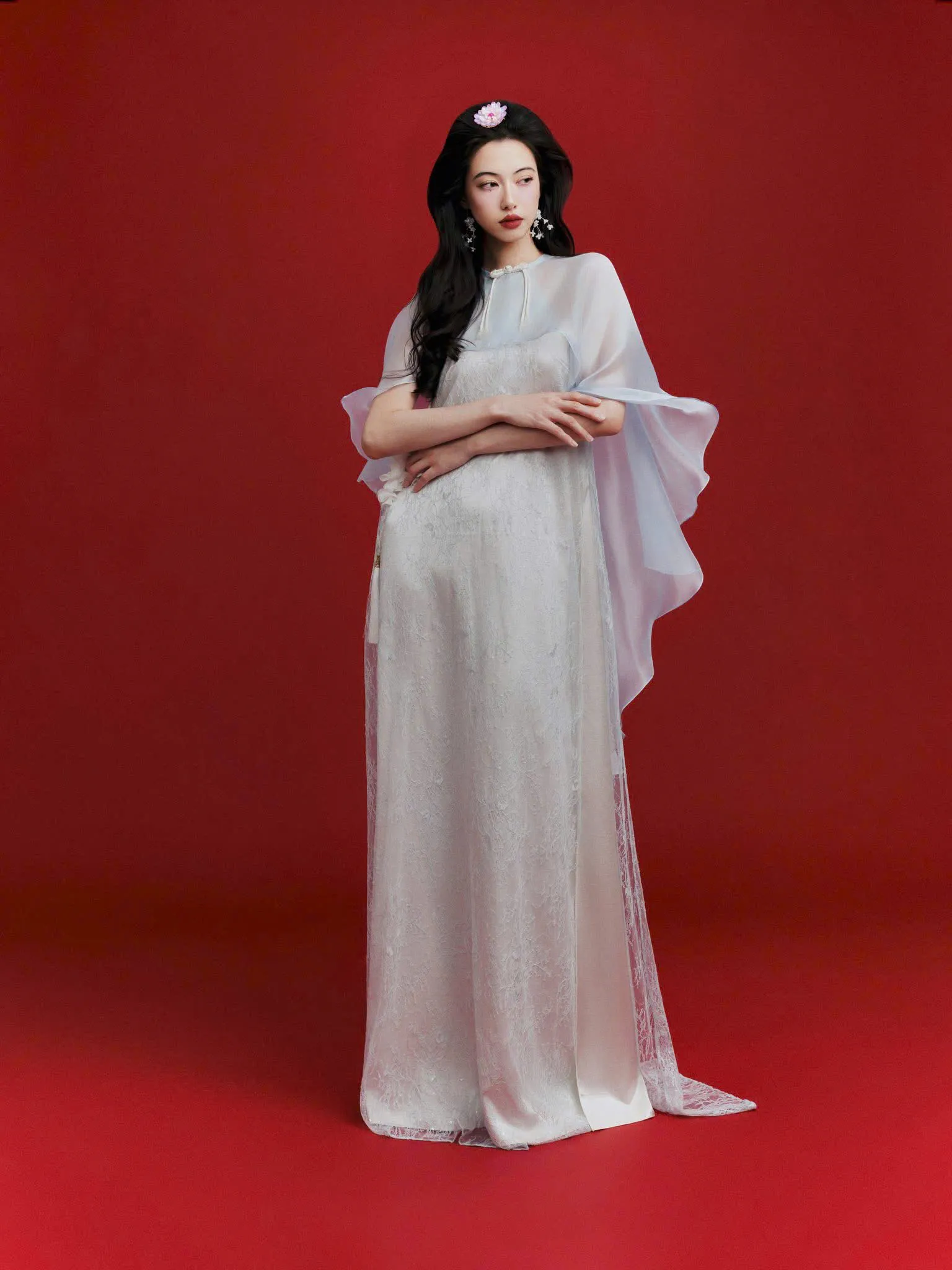 Áo Dài Cách Tân OnonMM Trắng Ngà Voan Ren Thanh Lịch