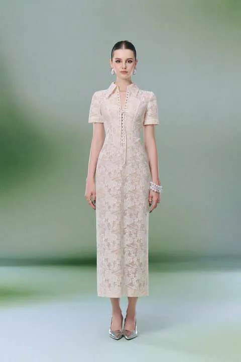Chiếc đầm midi Laling này là sự lựa chọn hoàn hảo để bạn tỏa sáng với vẻ ngoài thanh lịch và quyến rũ. Được chế tác từ chất liệu ren cao cấp với hoa văn tinh xảo, đầm có phom ôm nhẹ nhàng, khéo léo tôn lên vóc dáng yêu kiều của bạn mà vẫn mang lại sự thoải mái tối đa khi di chuyển. Điểm nhấn ấn tượng là phần cổ V sâu cùng chi tiết thắt dây kiểu corset phía trước, tạo nên nét chấm phá đầy cá tính và cuốn hút, giúp bạn nổi bật giữa đám đông. Với tay ngắn lịch sự và chiều dài midi sang trọng, đây là trang phục lý tưởng để bạn tự tin xuất hiện trong mọi sự kiện quan trọng, từ những buổi tiệc nhẹ, họp mặt đến các buổi hẹn hò lãng mạn. Thuê ngay để biến mình thành tâm điểm của mọi ánh nhìn!