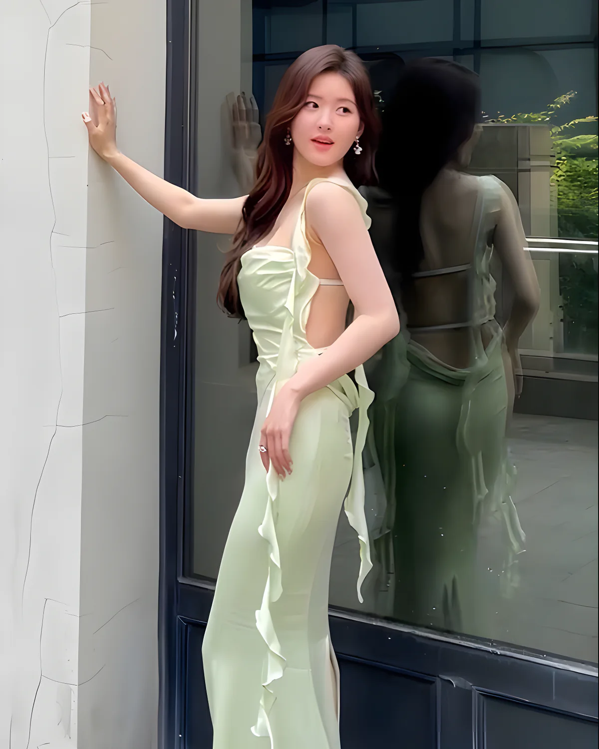 Nana Jacqueline Size L – Đầm Dạ Hội Lụa Xẻ Tà Màu Xanh Pastel