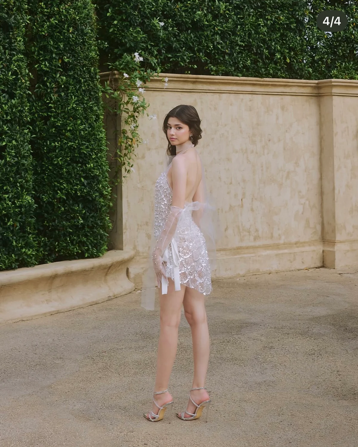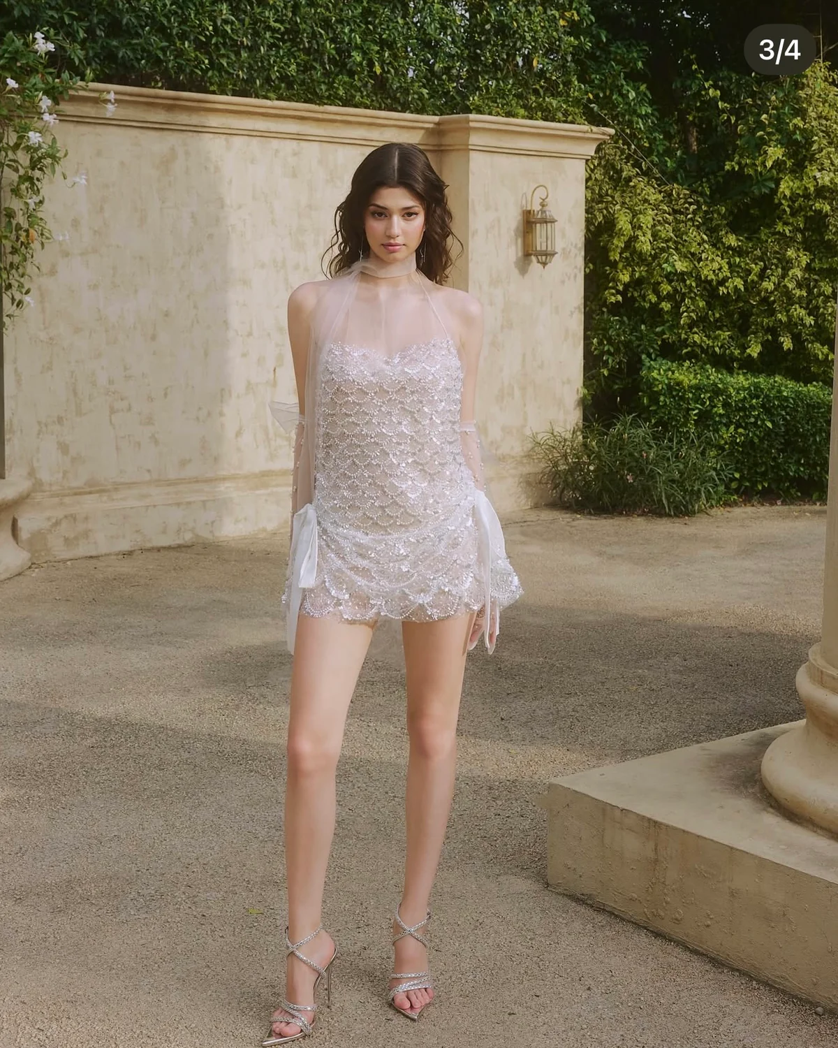 Ninisesi Size L – Đầm dự tiệc ngắn đính đá trắng tinh khôi